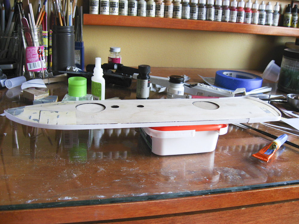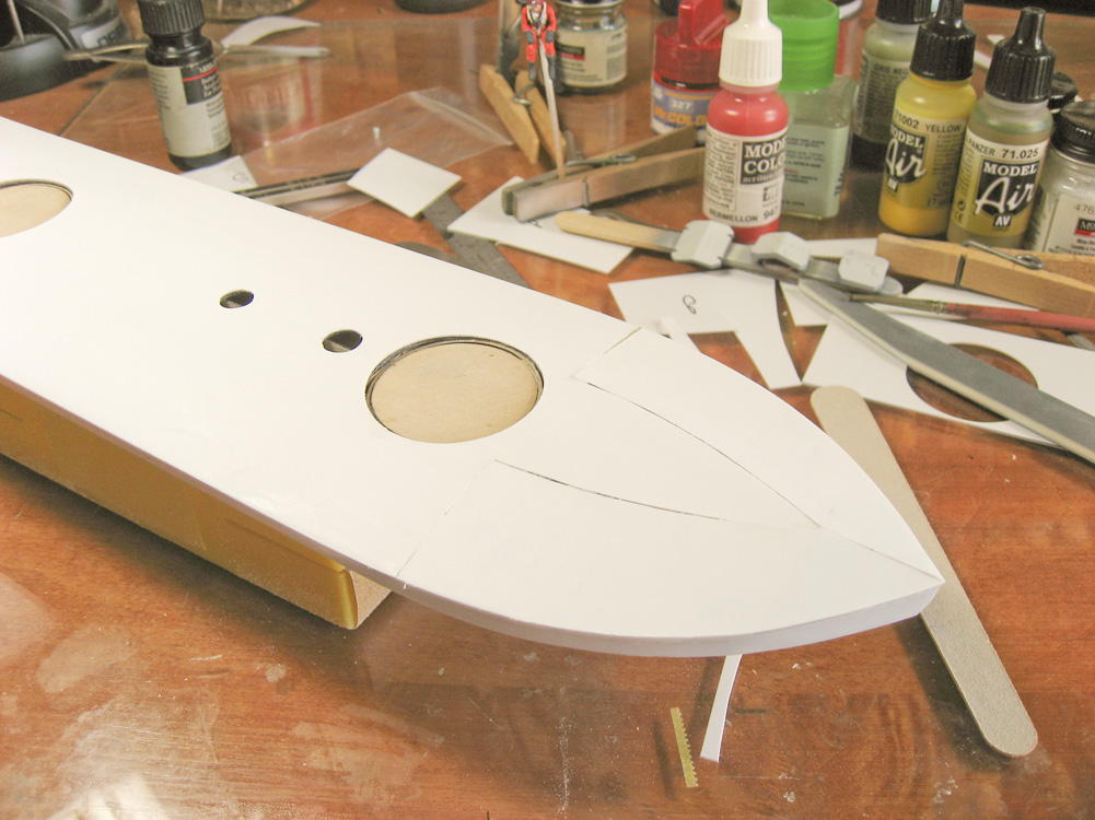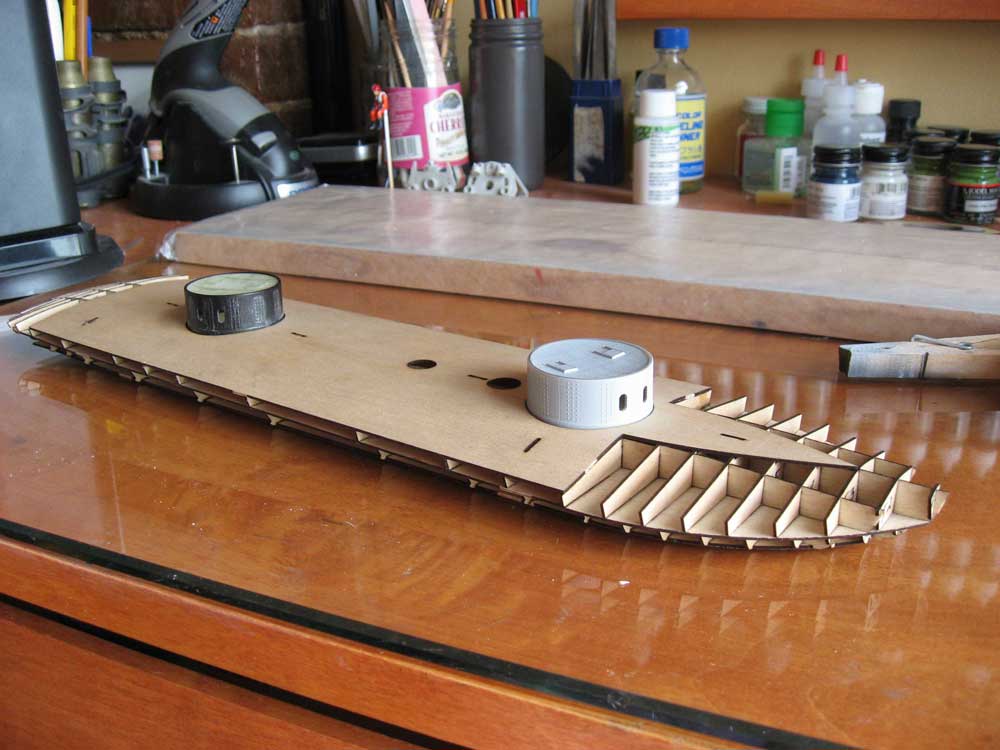 So far, the major work has been on body work, repairing seams that have cracked over the years, and prepping the hull for paint. I’ve been drawing all of the other components in CAD, using Rhinoceros v6, as I don’t have the original files for the turret, stack, screw, etc., and the prints of those items that I purchased from Shapeways years ago have degraded significantly.