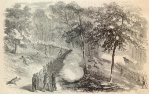 Among the first units of the Army of the Potomac to pass into Pennsylvania on June 30th, 1863, the Iron Brigade enjoyed the cheering crowds and free food from grateful civilians that Robert E. Lee’s “Army of Liberation†had been expecting but never saw. The men that made up the Brigade — of the 2nd, 6th and 7th Wisconsin, the 19th Indiana, and the 24th Michigan — spent the night camped where Marsh Creek crosses the Emmitsburg Road (this area today is a non-descript dip in Highway 15, but if you know what to look for, you can find it). Members of the 19th Indiana pulled picket duty on the northern border of the camp, and found themselves the very tip of the spear of the Union Army, the furthest north and closest to the enemy. A few of the men on picket duty noticed a prominent hill in the distance that passing locals identified as Big Round Top, just outside of the town of Gettysburg.