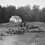 The men of the 19th Indiana and the Iron Brigade rejoiced at the break. They’d been roughly handled in their first three battles, and their numbers depleted drastically. Immediately after the battle the unit camped on the battlefield near the Dunker Church, their objective the morning of the battle. As the fortunate began to trickle in from the hospital, the survivors walked the fields, burying the dead men and feeding huge bonfires to burn the dead horses and mules; inky black smoke towered skywards for weeks afterwards while Gardner’s photographers walked the battlefield and photographed the carnage.