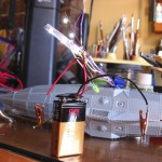 - Nine volt battery clipped to everything, making sure it all works.