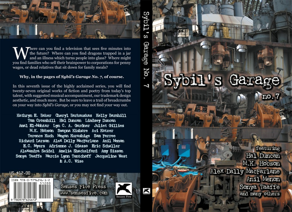 Today sees the release of the latest edition of Sybil’s Garage. With issue #7 the format has changed to a larger anthology format, allowing for 18 fiction pieces, nine poems, and one non-fiction piece.