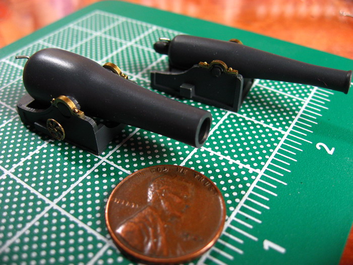 I’m still plugging away on the USS Weehawken, my deadline of March 7th looming larger and larger every day. I wanted to post these shots, though, of the XV-inch and XI-inch Dahlgren cannons. I’m really happy with the way they came out. While the full-sized cannons were massive, deadly, and ugly, these little facsimiles could be considered cute.