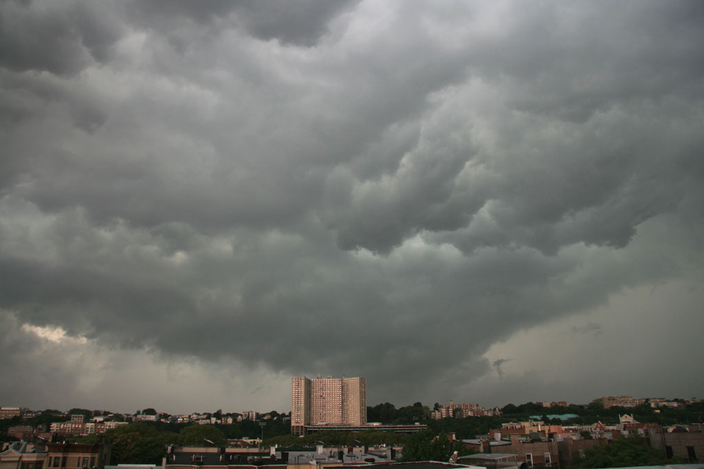 Two shots of the weather that rolled through earlier today. I shot 4 gigs of photos trying to get the elusive shot of a lightning strike. One of my life’s goals. No such luck today, but I did catch these funky boiling clouds.