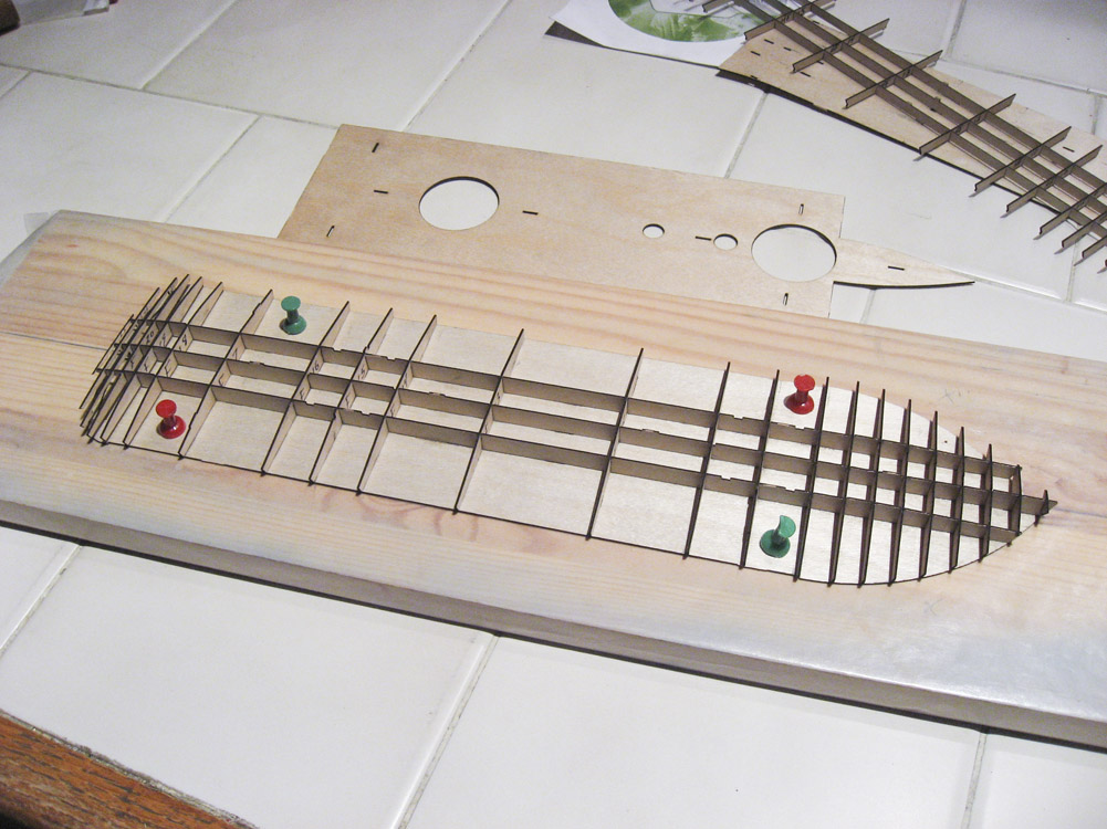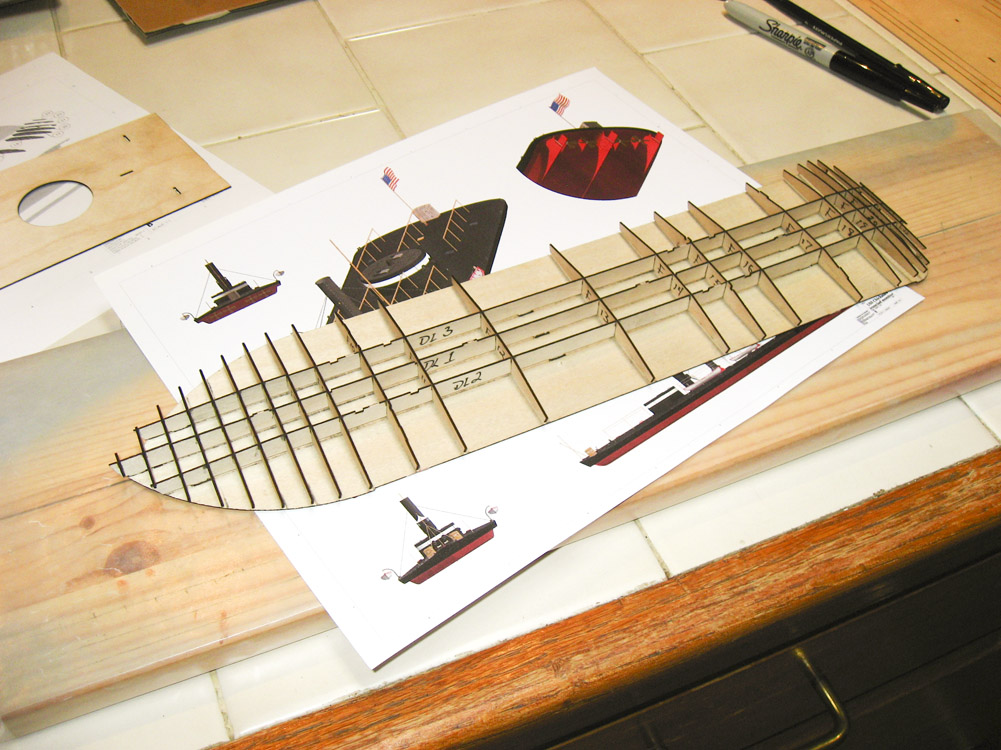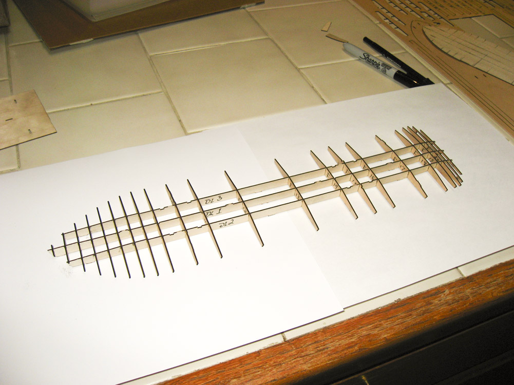 This is a 1/200 scale scratch build. I am cheating a lot on this one, though, as the bulk of the framing was done in a 3D CAD program by Dean Horvath. He broke the 3D model down into kit components and we had it laser cut from thin plywood for me to assemble. The process of the 3D design can be found on the Modelwarships.com website HERE.