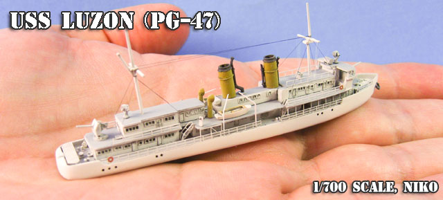 USS Luzon’s story doesn’t end there. Raised by the Japanese in May, 1942, she went on to serve as the gunboat Karatsu, working with the Japanese Army around the Philippines in counter-guerrilla operations; during that time she is credited with sinking the U.S. submarine USS Cisco. Torpedoed by USS Narwhal in March 1944, Luzon/Karatsu was towed back to the Philippines for repairs, but resources were too few and her priority too low for the war effort, so she was scuttled as a blockship in Manila Bay on 5 February 1945.