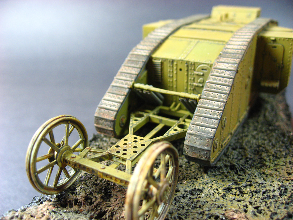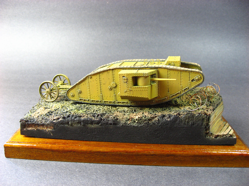 The MKI is the first vehicle in the world to be called a “tank”. It grew out of two needs: to protect advancing troops, and to cross trenches. As one can imagine, this new weapon met with initial difficulties as the kinks were worked out, but the overall design was sound enough to evolve up through the MK V, and to inspire other designs that followed. The MK I and variants was used by most of the Allied powers during the war, and many captured tanks were also fielded by the Axis powers. Approximately 150 MK Is were built during the war.