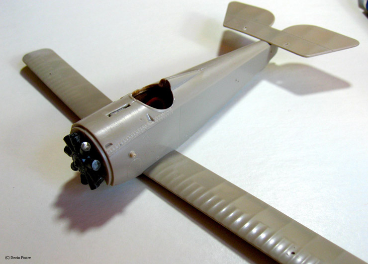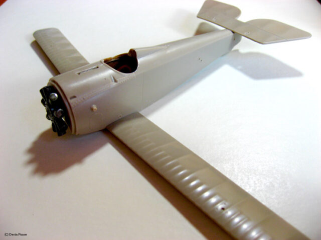 One issue encountered the build was self-inflicted: I tried to fix a warp in the horizontal stabilizer with boiling water and warped the thing beyond use. Ultimately, I scratch built a replacement from sheet styrene. With the issues above, and an incorrect engine for the aircraft depicted (more of that “instructions don’t match the plastic” problem) I decided to just finish the kit as best as I could.