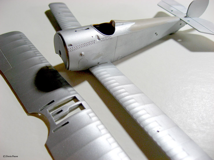 For this kit, I wanted to build something quick and out-of-the-box; no resin, photo-etch, scratch building, etc. Just the plastic in the box and whatever glue and paint was needed. I used old school lacquer Floquil Old Silver for the fuselage and wings to replicate the painted linen, Alcad metallizer for the spinner and cowling (that stuff is beautiful, can’t wait to use it again), and Vallejo acrylics for everything else.