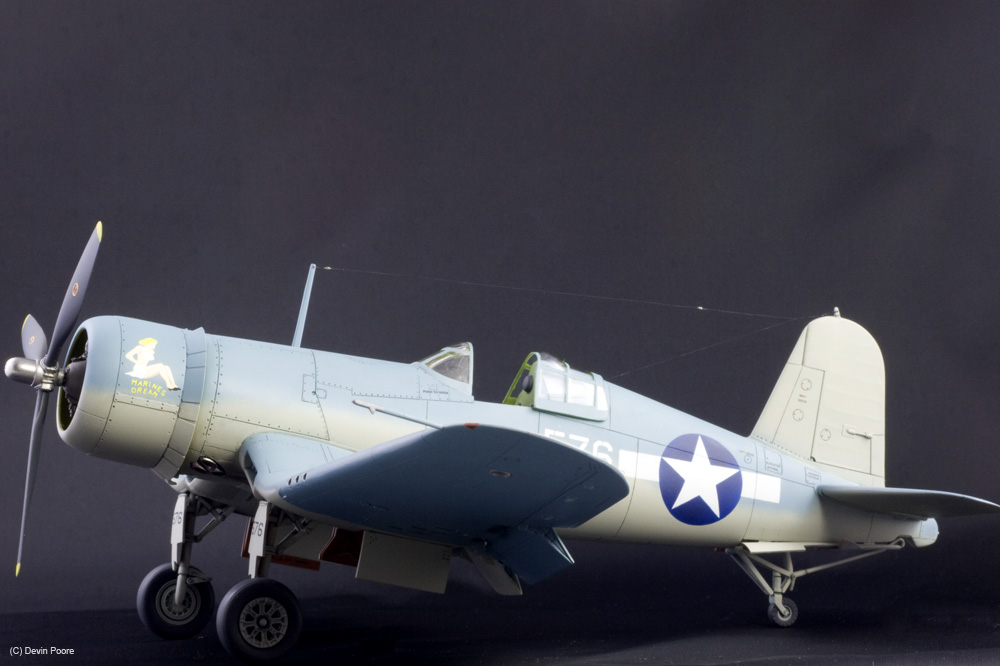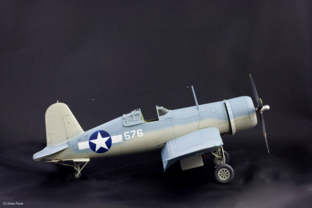 I’ve been a fan of the Corsair for years. We used to go to a lot of museums and air shows when I was child, and I can remember standing in front of one of these monsters (they are HUGE aircraft) and just being dumbfounded by the size and the weird wing arrangement. It’s still one of my favorite aircraft to this day. It’s been over 20 years since I’ve built a model of one, though — the old Monogram 1/48th scale kit with moving parts (!) — so I wanted to give it a go again.