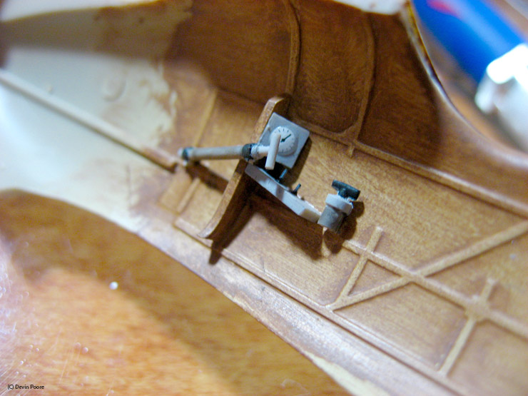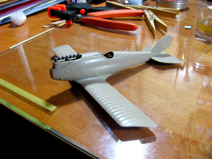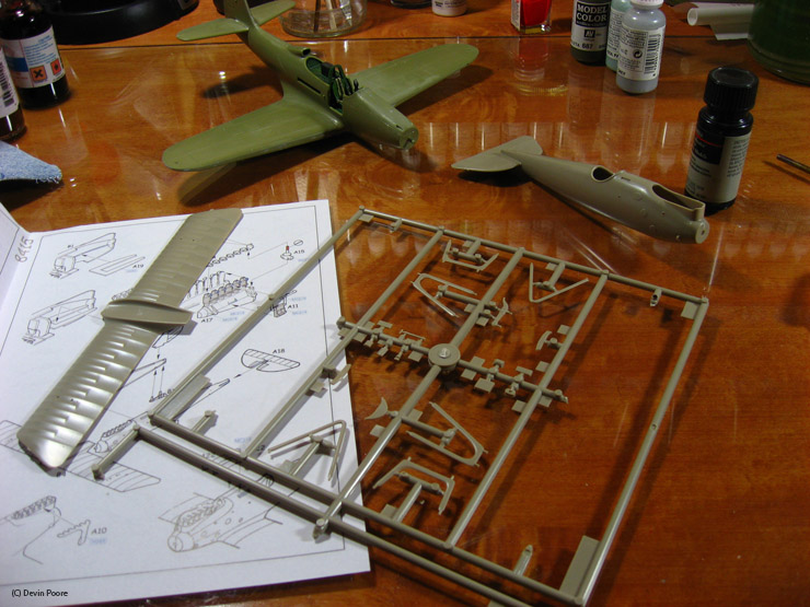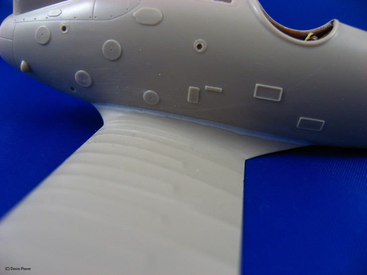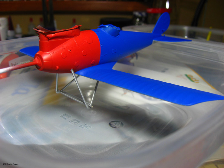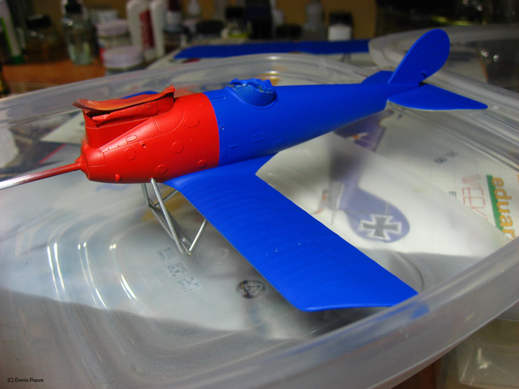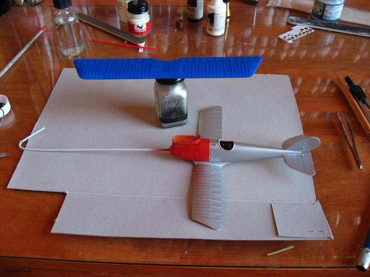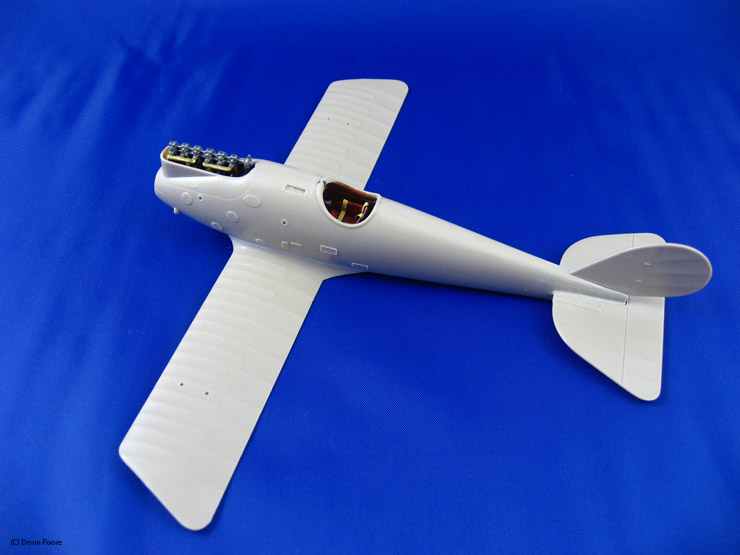 I built this kit out-of-the-box (OOB in modeler’s lingo) and only added clear nylon thread for rigging and fine brass wire for control surface linkage. Seams were minimal, only where the top fuselage joined and where the wing met the lower fuselage. Mr. Surfacer made quick work of those. I assembled the fuselage, tail and lower wing and then painted and decaled everything. Paints are all “close enough for me” approximations using the kit color call-outs and conversion charts to find Vallejo acrylic paint approximations.