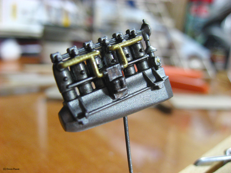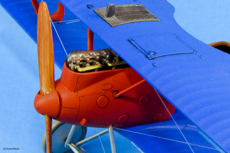 The wing struts gave me a major headache, mostly due to my inexperience and using the wrong adhesive to attach them at first, but the aircraft nearly became airborne upon a torrent of swearing more than once. Once that was sorted, though, the rigging and final details went together really well. I left off the tubing that should run from the engine to the wing radiator because it was not included in the kit; also because it would have been a fiddly business to build and fit one, and after the strut frustrations I just wanted to finish the thing.