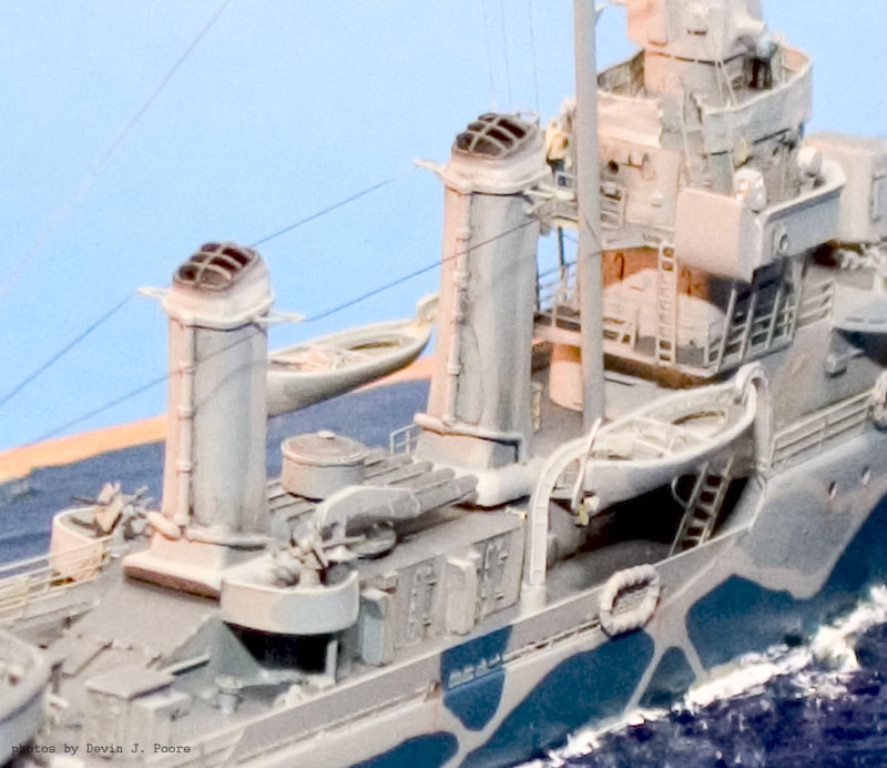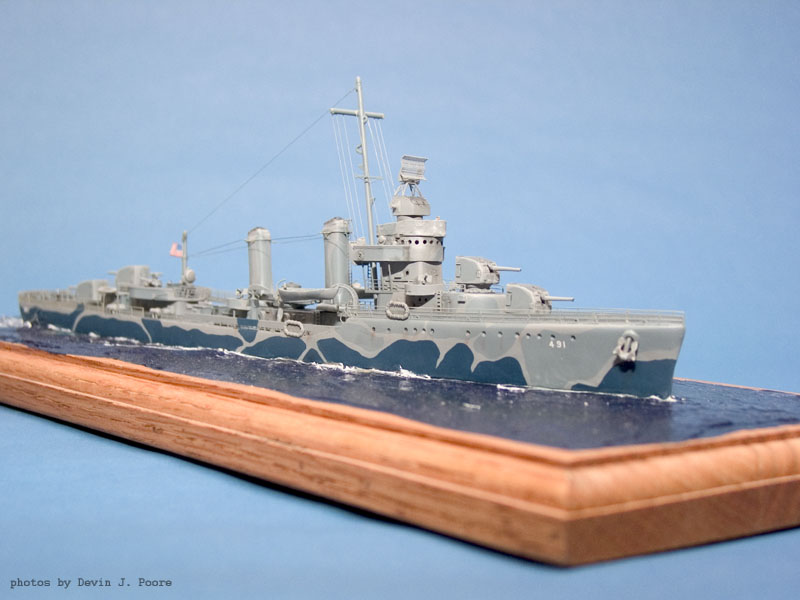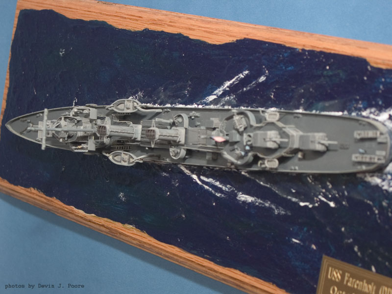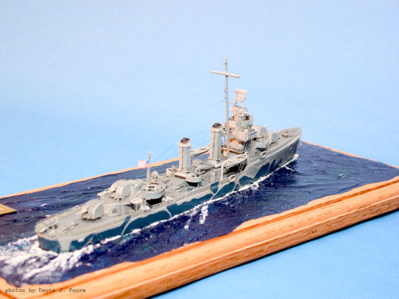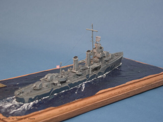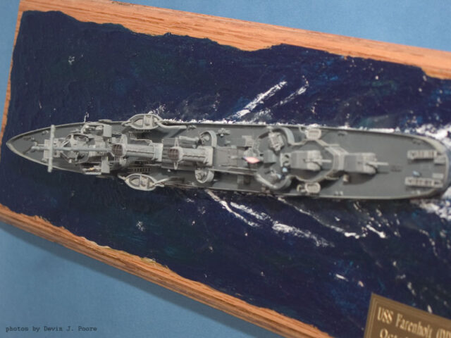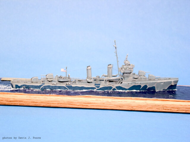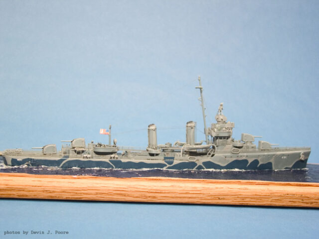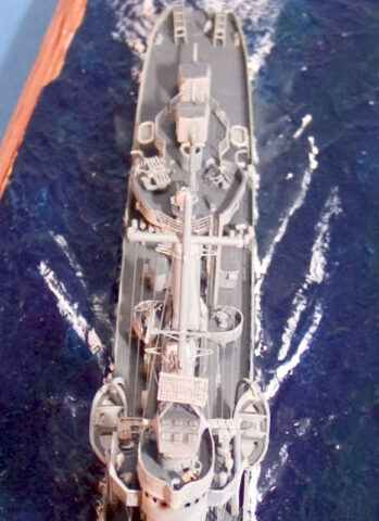 This is the Yankee Modelworks kit of the USS Farenholt, in 1/350th scale, as she appeared in late 1942. The kit is approximately 12 inches long. I did a detailed build article on this kit, which can be viewed at Modelwarships.com in their Featured Articles section. This was my first foray into the world of resin ship modeling, many years ago; I’m pretty sure I started this project in the 1990s. To this day, I’m quite pleased with the results. Sure, there are mistakes, but I learned a lot on this, my first resin model kit ever.