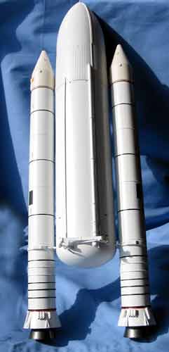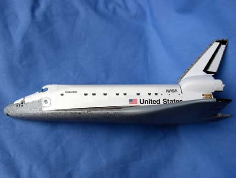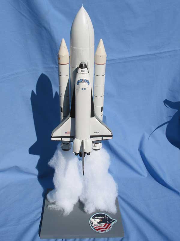 The Airfix 1/144th scale kit of the space shuttle. The model is of the Columbia as she appeared during STS-2. The unique aspect of the first two flights is that the external fuel tank was painted white, to match the boosters and orbiter. After these two flights, the tanks were left the current, unpainted, orange-rust color to save weight. I chose to model the second flight configuration, as this was the first re-use of a space vehicle.