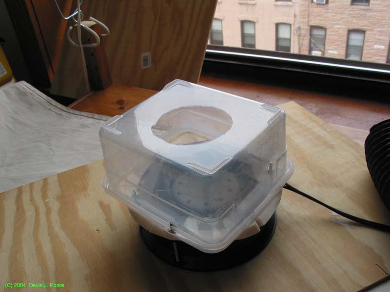There’s nothing else to say or show. Set your large container on a table, put the fan assembly in the window, and stick the exhaust tubing into the back of the two small containers, and you’re good to go.