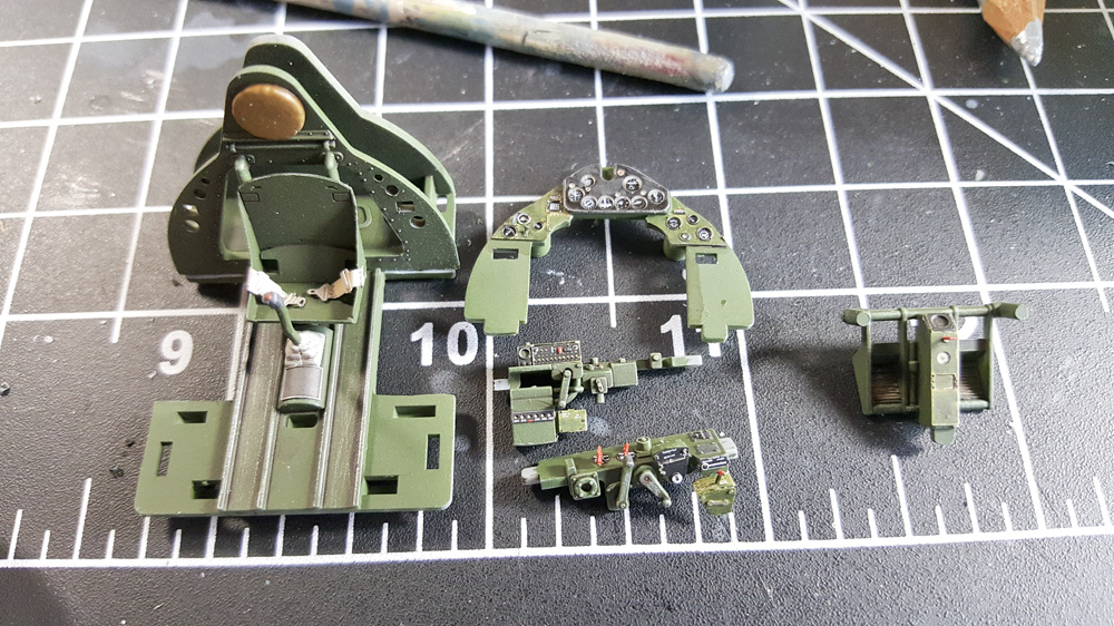 Cockpit Bronze Green: Vallejo Military Green 089, cut slightly with Buff 120