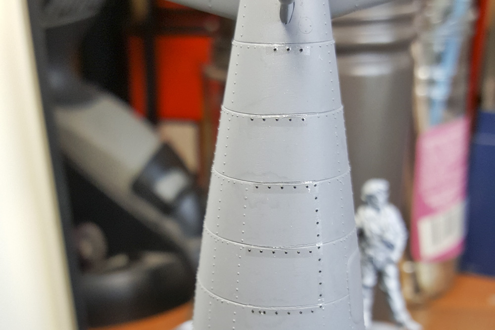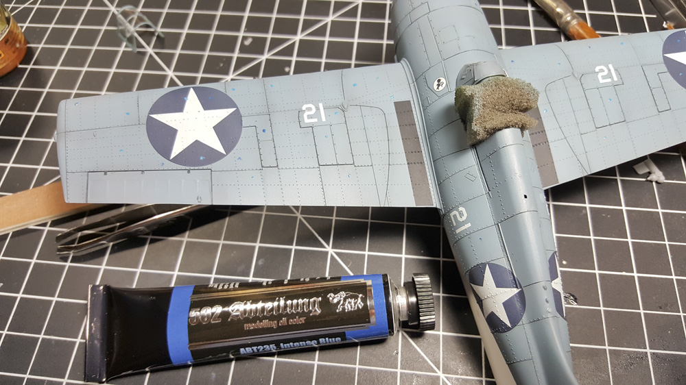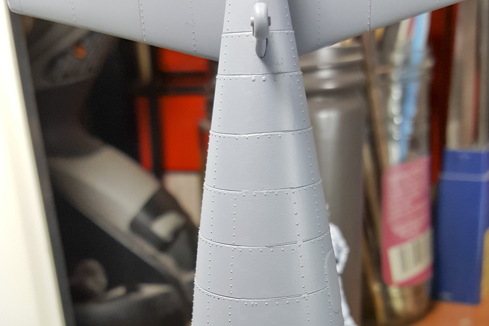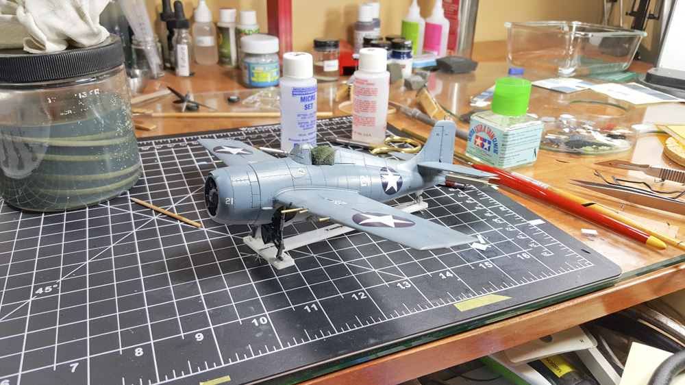 This is the Tamiya kit of the F4F-4 in 1/48th scale. It remains the best option for this plane in this scale, even though the molds are now over 20 years old. It goes together very well. The only issues I encountered was a gap between the pilot headrest and the fuselage, and a bit of a seam on the lower fuselage. The lower fuselage seam lost some of the raised rivet detail during filling and sanding, which I replaced with short sections of Archer Transfer’s resin rivet decals. They blend in quite nicely.