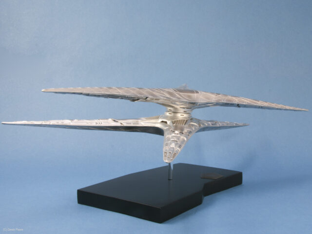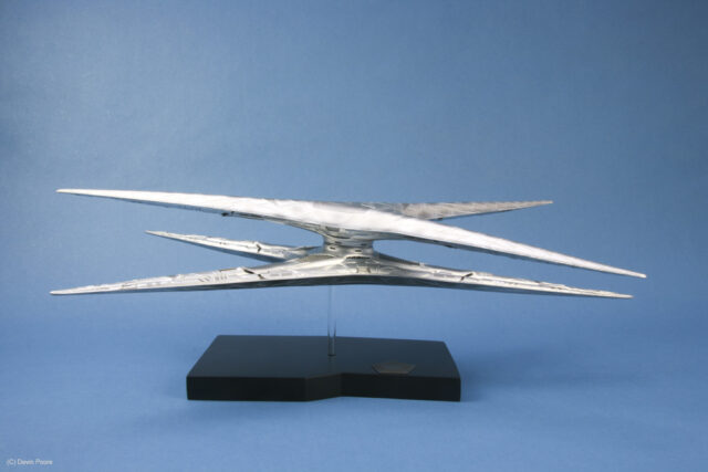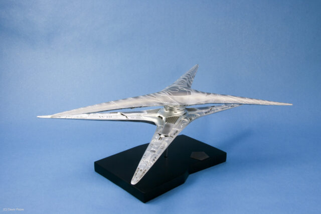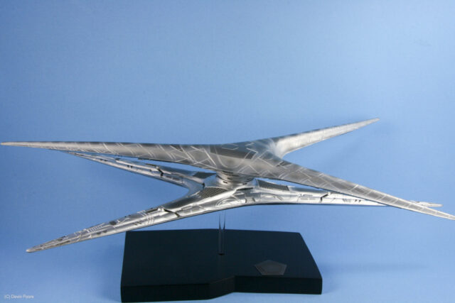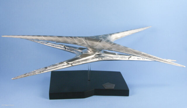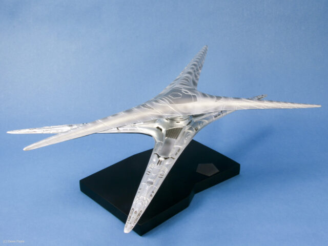 The Cylon Basestar is another bit of Battlestar Galactica hardware that was updated for the new series that ran on the Sci-Fi channel from 2004 to 2009. The Basestar is the Cylon’s big gun ship, and home to squadrons of Cylon Raider fighters.