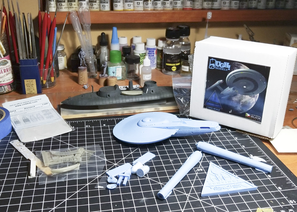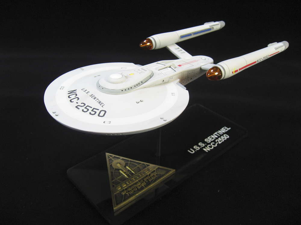 The U.S.S. Sentinel is a Federation Light Cruiser, designed by Bill Krause ( check out his amazing work on Instagram). He scratch built the original Sentinel, envisioned as a ship from the period between the end of the original Star Trek series and the first movie, in 1/350th scale. This is a kit, based upon Bill’s design, from UGH! Models, who unfortunately received the big fat Cease and Desist from the Star Trek gods a year or so ago. The kit is 1/1000 scale, cast resin, from a 3D printed master.