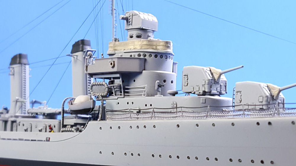 This is the 1940 boxing of the Dragon models Benson/Gleaves destroyer kit. It basically contains everything in the previous wartime fit kits, plus the extra parts needed for the pre-war version as seen here. These parts include .50cal machine guns, alternate bridge assemblies, intricate searchlight tower for the aft deckhouse, additional boats, and several other period-specific pieces.